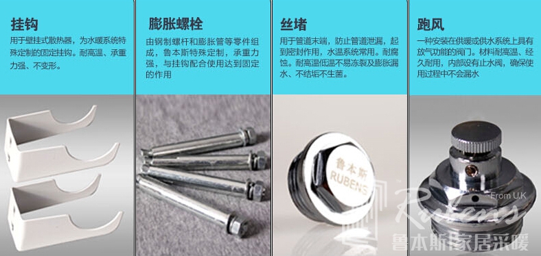 暖氣片固定在墻面上的好幫手,在如今越來越追求美觀的情況下,消費(fèi)者更習(xí)慣將暖氣片掛在墻面上,這就要求脹釘和掛鉤具有很強(qiáng)的抗壓、抗拉性能,保證暖氣片不會(huì)移動(dòng),安全的工作。