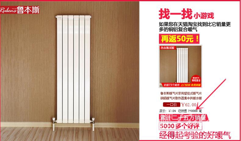 作為國內(nèi)暖氣片行業(yè)的龍頭品牌,魯本斯暖氣片始終秉承“藝術(shù)設(shè)計、高等品質(zhì)、低端價格”的企業(yè)理念,根植于國內(nèi),以先進(jìn)的技術(shù)和的品質(zhì)為客戶提供滿意的產(chǎn)品與服務(wù)。銅鋁復(fù)合8575德加暖氣片便是由魯本斯自主研發(fā)設(shè)計,既能高能散熱,又能滿足當(dāng)下對時尚潮流的追求,短時間內(nèi)迅速使房間升溫,不管是何種裝飾風(fēng)格都能融入。自上市便被評論為性價比高的銅鋁復(fù)合暖氣片。魯本斯暖氣片天貓旗艦店它的銷量更是累計二十五萬之多,究竟這款暖氣片有什么出彩之處呢?來聽聽眾多消費者對它的評價和推薦理由吧: