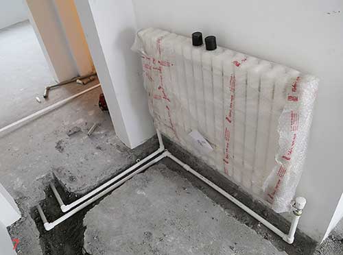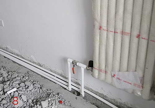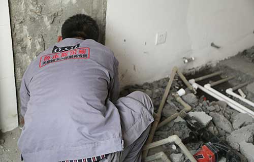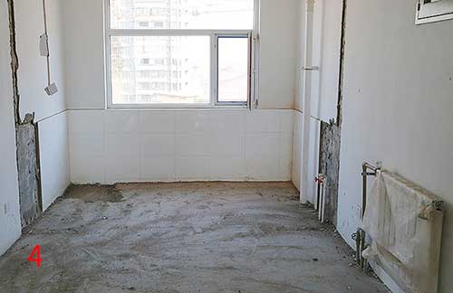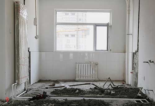 接下來(lái)裝修流程開(kāi)始,首先要改造水暖,開(kāi)發(fā)商標(biāo)配的