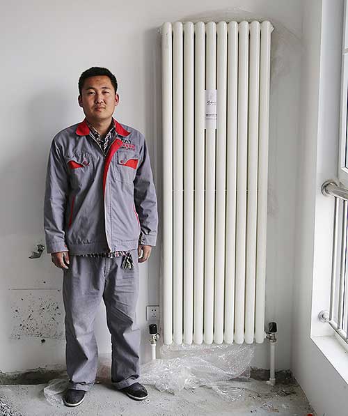 對(duì)了,差點(diǎn)忘了我們的安裝師傅,來(lái)個(gè)正面特寫。簡(jiǎn)直不忍直視啊,暖氣片怎么顯得安裝師傅這么黑啊,開(kāi)個(gè)玩笑,不要打我呀,哎住手....!