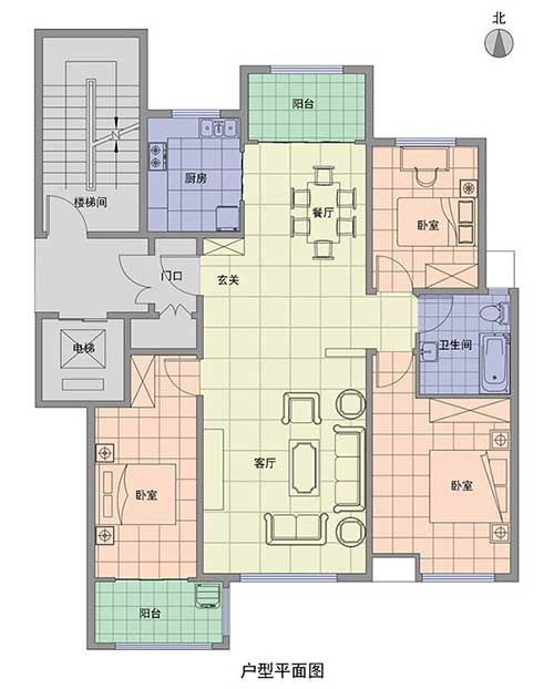 先來(lái)一張王先生家的戶型圖,三室兩廳一廚一衛(wèi),雙臥室、客廳向陽(yáng),南北通透,可算是一個(gè)很好的戶型。