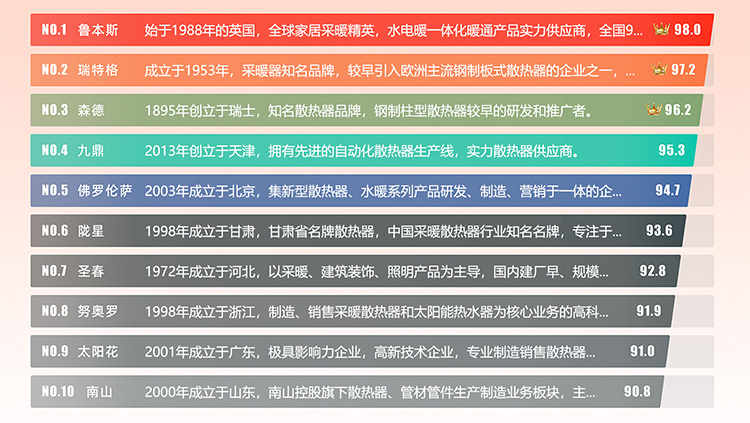 暖氣片十大品牌可以說是目前國內(nèi)市場上備受消費者喜愛的家居供暖品牌。這些品牌在產(chǎn)品質(zhì)量、性能、服務(wù)和口碑等方面都有著不俗的表現(xiàn)。以下是對這些品牌的詳細(xì)介紹。